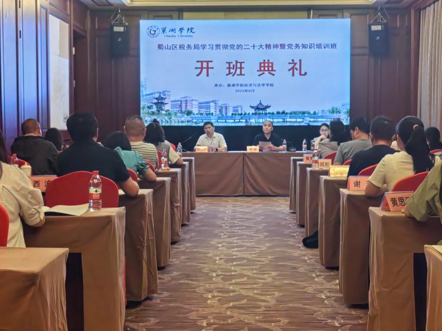 8月23日下午,受國家稅務總局合肥市蜀山區稅務局委托,巢湖學院經濟與法學學院承辦的“學習貫徹黨的二十大精神暨黨務知識培訓班”順利開班。本次培訓采用專題講座與線上學習相結合的形式展開,重點圍繞習近平新時代中國特色社會主義思想、中國式現代化理論、基層稅務機關黨建工作實務、黨風廉政建設等內容,致力于全面提升新時期稅務工作人員黨性修養和履職能力。
