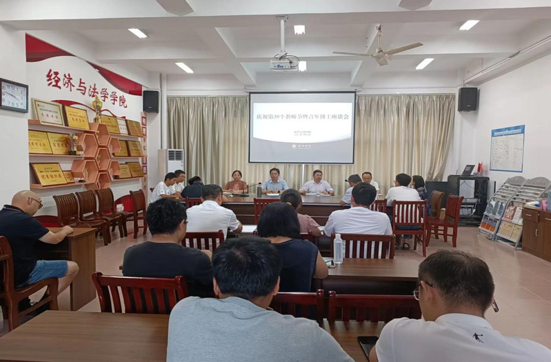 9月6日,在教師節(jié)來臨之際,經(jīng)濟與法學學院在學院會議室召開慶祝第39個教師節(jié)暨青年博士座談會。學院黨委書記石庭,院長徐志倉,黨委副書記、副院長施瑋,黨委副書記、紀委書記解雪梅及全體博士教師出席座談會。