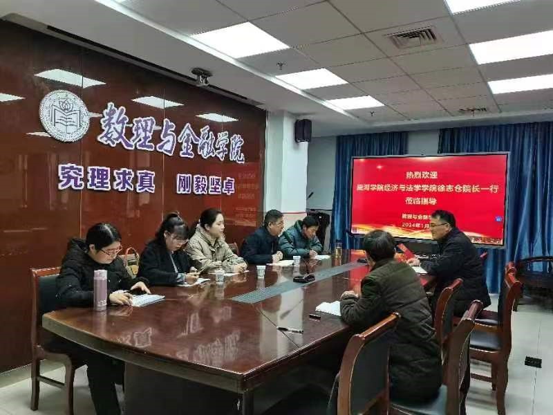 為了高質量推進金融工程專業新文科教育認證工作,1月9日上午,經法學院院長徐志倉、金融系主任林天水、專業教師等一行5人赴安徽工程大學數理與金融學院開展新文科教育專業認證調研,安徽工程大學數理與金融學院院長吳小太、副院長潘海峰、金融工程系主任周金明參會,會議由副院長潘海峰主持。