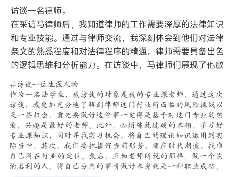 訪談生涯人物,汲取力量,探尋價值。深入了解他人的職業生涯軌跡,積極汲取成功經驗,提升溝通能力和批判性思維,幫助自己更好地進行職業選擇。寒假期間,同學們積極采訪心目中的生涯人物并打卡上傳感悟,為未來職業發展奠定堅實基礎。
