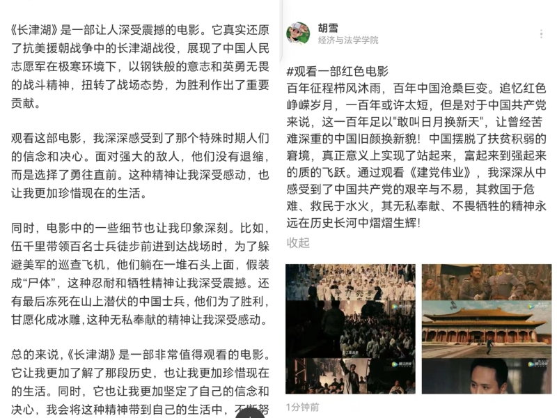 觀看紅色電影,愛我中華,生之浩蕩。紅色電影所弘揚和傳承的革命精神,有利于激發同學們激昂的愛國熱情,增強民族凝聚力和自豪感。通過觀看紅色電影,同學們紛紛表示要弘揚光榮傳統、賡續紅色血脈,滿腔熱忱地投入到祖國的浩瀚藍圖建設中去。