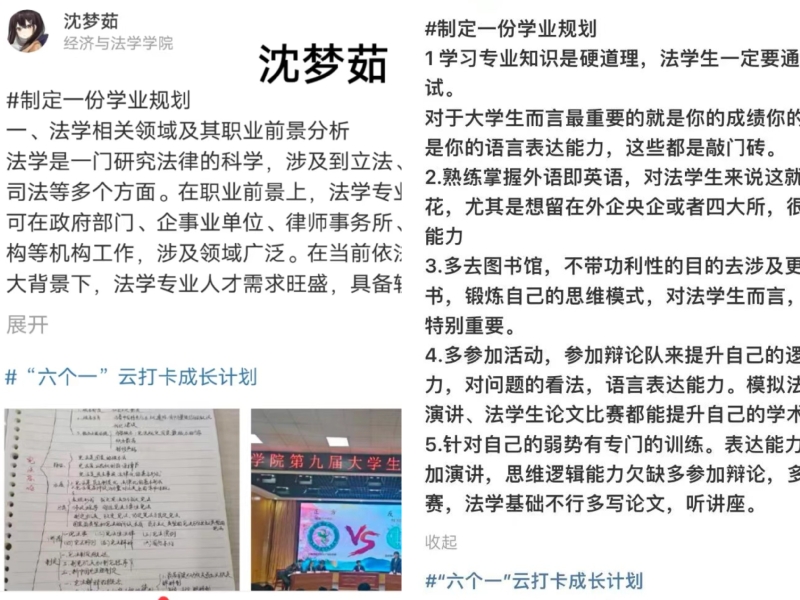為深入學習貫徹習近平新時代中國特色社會主義思想和黨的二十大精神,引導學生踐行社會主義核心價值觀,豐富學生的假期生活,提高學生的綜合素質,經濟與法學學院積極組織學生參與“六個一”云打卡寒假成長計劃主題活動,筑夢學生成長成才。