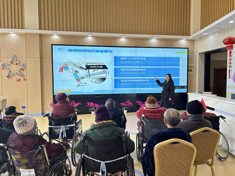 關懷暖人心,溫情永傳遞。在九久夕陽紅敬老院,黨員同志們通過采訪的形式科普防電詐知識,分享電信詐騙的真實案例,幫助老人更好地認識和了解電信詐騙的手段,增強防詐騙意識和自我保護能力。宣講結束后,志愿者們和老人聊天談心,了解他們的愛好,分享生活樂事,歡聲笑語如春風暖陽,帶給老人一段溫暖幸福的記憶,耐心傾聽他們講述過去的故事,給予積極的回應,品味老人們的百味人生,攜著三月的春風給予他們溫暖和關懷,為敬老院增添了春日的溫馨。