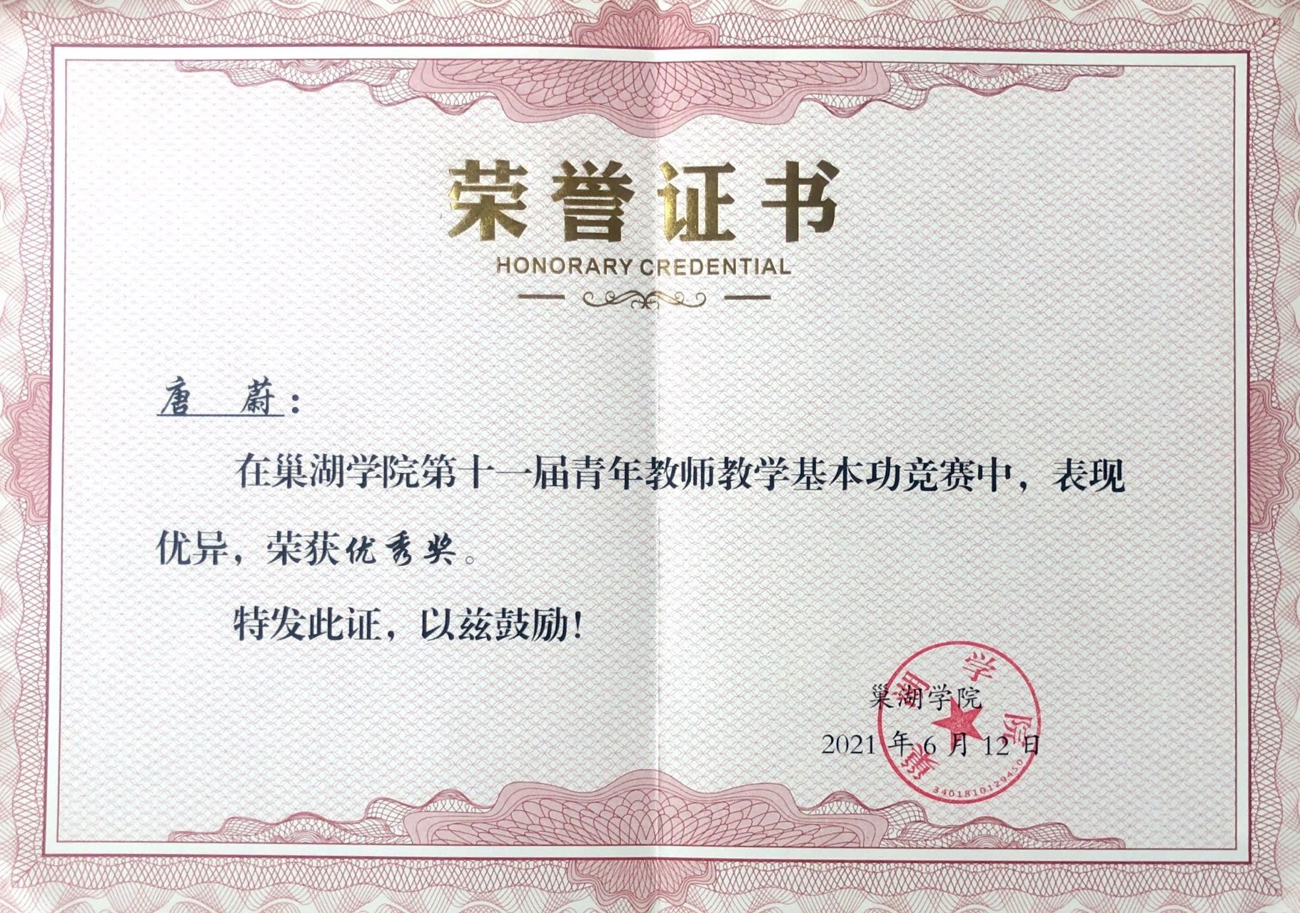 巢湖學院第十一屆青年教師教學基本功競賽優秀獎