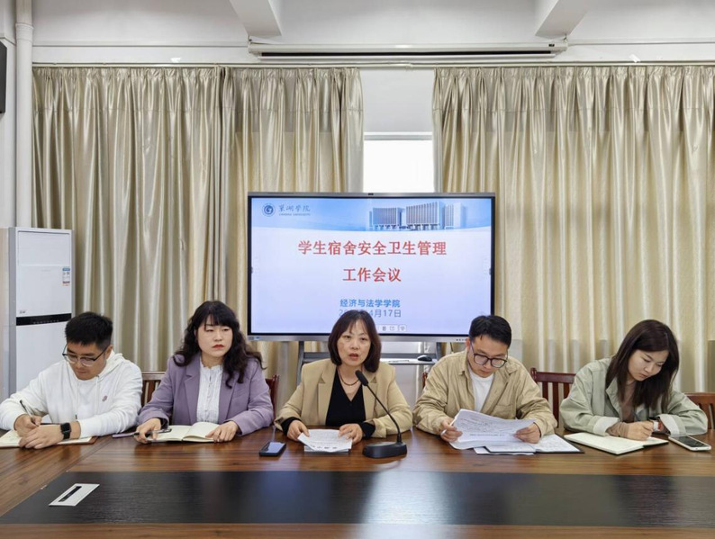 為培養學生良好的衛生習慣,營造安全文明、整潔衛生、溫馨有序的宿舍環境,建設良好學風環境。4月17日下午,經法學院在求實樓三樓會議室召開學生宿舍安全衛生管理工作會議。院黨委副書記解雪梅和輔導員出席,學院各班生活委員和學生會生活部成員參加。會議由院團委副書記劉向軍主持。