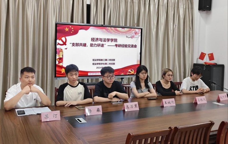 為充分調動學生考研積極性,增進考研認知、明確考研目標、掌握備考方法,5月21晚,經法學院教工第二黨支部聯合學生第二黨支部在學院會議室舉辦“支部共建,助力研途”考研經驗交流會。參加交流會的有教工黨員代表、學生黨員代表以及有考研意向的21-23級國貿專業學生。