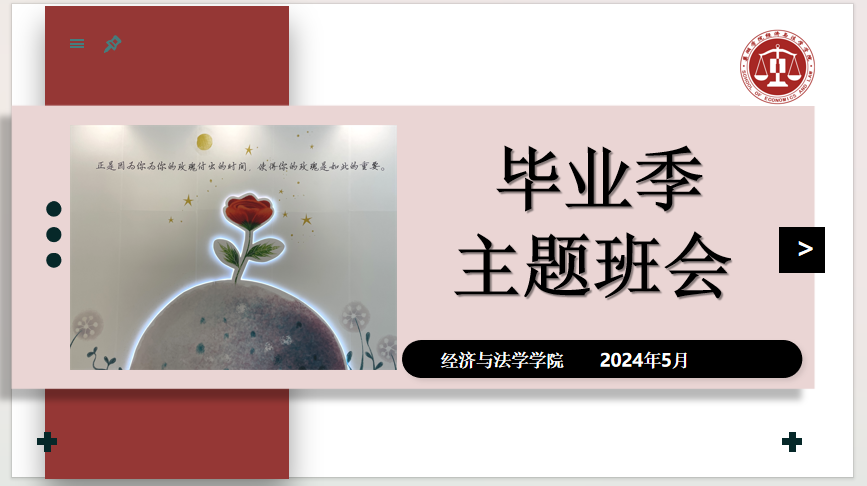 桃李不言滿庭芳,弦歌數(shù)載培棟梁。仲夏將至,畢業(yè)在即。為更好教育引導(dǎo)畢業(yè)生堅(jiān)定理想信念,激發(fā)畢業(yè)生愛校榮校之情、感念師恩之心和成才報(bào)國(guó)之志,營(yíng)造積極向上、生動(dòng)活潑、文明有序、溫馨和諧的畢業(yè)氛圍,經(jīng)濟(jì)與法學(xué)學(xué)院高度重視,精心謀劃,扎實(shí)開展2024屆畢業(yè)生思政主題教育系列活動(dòng)。