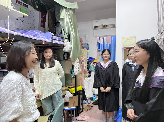 一聲問候送溫暖,關(guān)懷入寢以寄情。5月22日,經(jīng)法學(xué)院黨政領(lǐng)導(dǎo)帶隊(duì)深入學(xué)生社區(qū)走訪畢業(yè)生寢室。走訪過程中,學(xué)院領(lǐng)導(dǎo)和老師對(duì)畢業(yè)生的升學(xué)就業(yè)狀況、生活近況、行程安排、面臨困難、未來(lái)打算等進(jìn)行了細(xì)致地了解。對(duì)已經(jīng)成功升學(xué)和簽約的同學(xué)表示祝賀,對(duì)尚未就業(yè)和準(zhǔn)備二戰(zhàn)的同學(xué)提出鼓勵(lì)和建議,詳細(xì)解答了畢業(yè)生的諸多問題,并向他們送上美好的畢業(yè)祝福。老師們叮囑畢業(yè)生,希望即將就業(yè)的同學(xué)們?cè)谛碌膷徫簧戏e極進(jìn)取,踏實(shí)工作,爭(zhēng)取取得更大的成績(jī);升學(xué)的同學(xué)們?cè)诳蒲袑W(xué)習(xí)的道路上奮力拼搏,早日為國(guó)家建設(shè)貢獻(xiàn)力量;對(duì)暫未就業(yè)的同學(xué)能夠根據(jù)自身實(shí)際情況樹立理性的就業(yè)、擇業(yè)觀,調(diào)整心態(tài)和期望值,主動(dòng)參加招聘會(huì),早日實(shí)現(xiàn)就業(yè)。同學(xué)們紛紛表示一定會(huì)謹(jǐn)記領(lǐng)導(dǎo)老師們的諄諄教誨,堅(jiān)定理想信念,發(fā)揮“經(jīng)法智慧”,做出“經(jīng)法貢獻(xiàn)”,書寫人生新篇章。