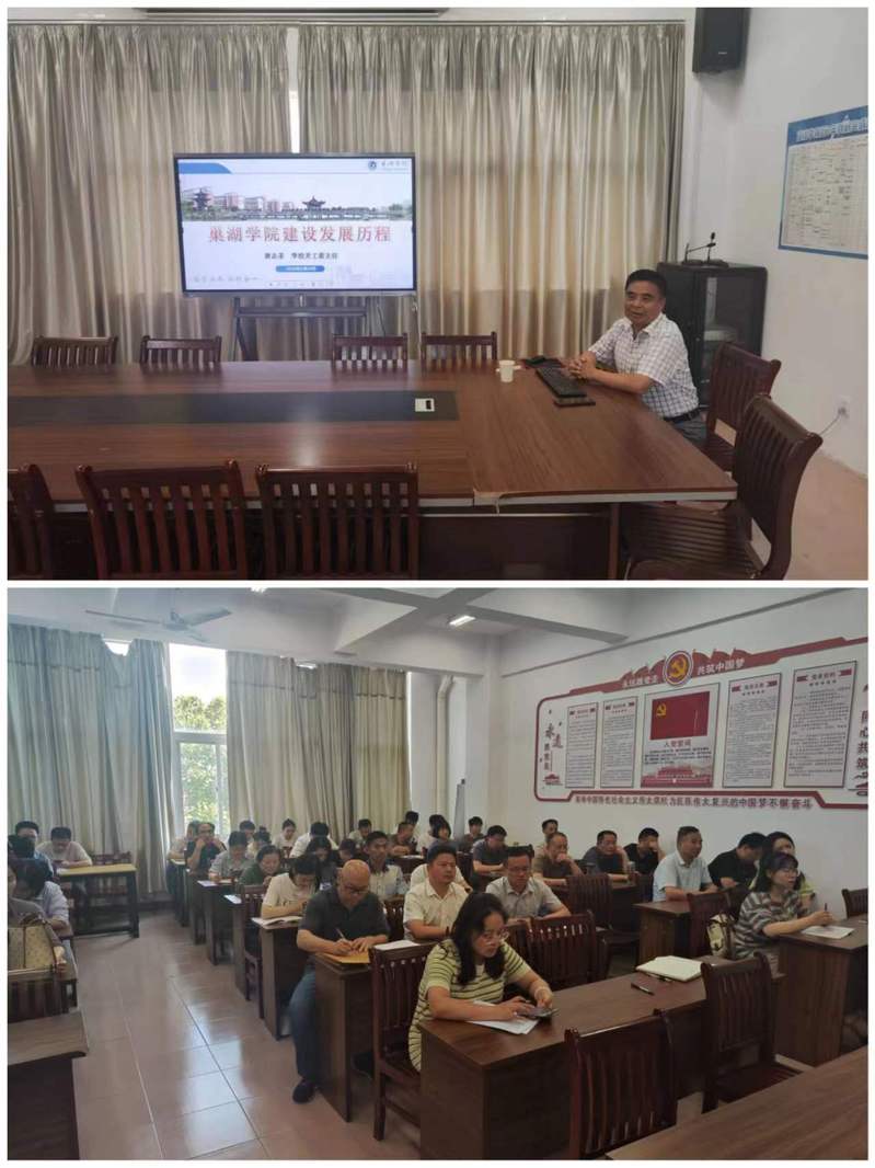 學(xué)校歷史是學(xué)校發(fā)展的見證,也是學(xué)校精神的傳承。為激勵(lì)師生員工繼承和發(fā)揚(yáng)巢湖學(xué)院艱苦奮斗傳統(tǒng),進(jìn)一步弘揚(yáng)愛校、榮校精神,5月29日下午,校關(guān)工委主任黃志圣到經(jīng)濟(jì)與法學(xué)學(xué)院作校史校情專題報(bào)告。會(huì)議由經(jīng)濟(jì)與法學(xué)學(xué)院院長(zhǎng)徐志倉(cāng)主持,經(jīng)法學(xué)院全體教職工參加報(bào)告會(huì)。
