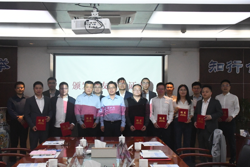 經(jīng)濟(jì)與法學(xué)學(xué)院黨委書記石庭為與會15位優(yōu)秀校友頒發(fā)巢湖學(xué)院校友顧問聘書。經(jīng)濟(jì)與法學(xué)學(xué)院副院長施瑋代表學(xué)院分別與上海數(shù)科律師事務(wù)所等5家校友律所現(xiàn)場簽署了校企合作協(xié)議。