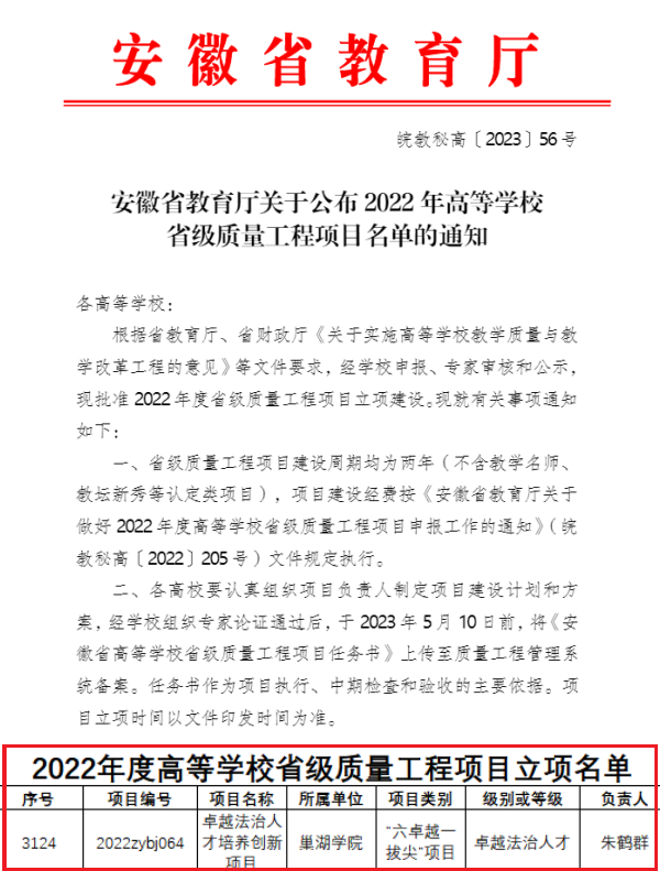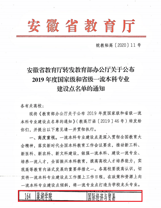圍繞安徽省十大新興產業發展,學院積極推進學科專業優化調整,進一步發揮“應用經濟學”校級重點學科龍頭和引領作用,以“上水平、出高水平成果”為目標,積極打造高水平創新平臺,促進高水平成果產出。國際經濟與貿易專業獲批省級一流本科專業建設點;法學專業獲批省級卓越法律人才建設專業和校級特色專業,并被列入省級“六卓越一拔尖”培養計劃;金融工程專業獲批省級振興計劃建設專業,并于2024年6月順利通過長三角新文科教育專業認證。