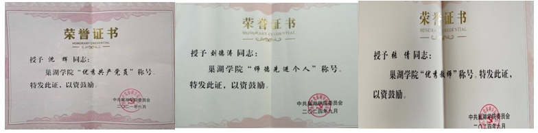 學院大力弘揚教育家精神,緊緊圍繞立德樹人這一根本任務,深入學習“人民教育家”、“時代楷模”、新時代教書育人楷模、優秀教師、模范教師、最美教師等先進事跡。近年來,學院2人獲得省級“線上教學新秀”,20余人次獲得校級“師德先進個人”、“優秀教師”、“優秀教育工作者”等榮譽稱號,1名教師的先進事跡入選學校師德先進案例,1名教師獲得校級“我心目中的好老師”,1人獲得巢湖市“同心奮進跟黨走”先進個人等榮譽。