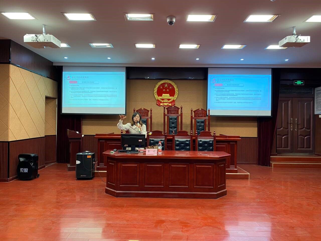 講座主題為“公司法中的實務問題”。袁娟以公司法領域為切入點,從“公司法的發展”、“新公司法內容概要”、“案例分析”以及“法學理論與實踐的思考”等四個方面展開。講座過程中,袁娟結合自身處理過的實際案件,向同學們講授股東出資、表決以及股權轉讓等內容,幫助學生直觀地了解法律工作流程和實際案件處理方式,極大地拓寬了學生的專業視野。