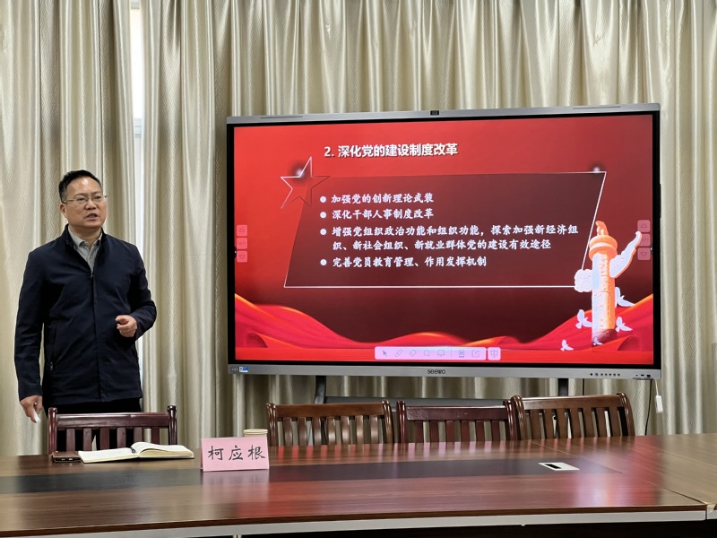 為深入學習宣傳貫徹黨的二十屆三中全會精神,落實立德樹人根本任務,推動全會精神學習走深走實,11月28日下午,校黨委委員、組織部部長柯應根在經濟與法學學院會議室作黨的二十屆三中全會精神專題宣講報告,經法學院黨政領導班子成員、部分教師黨員、全體學生黨員發展對象,以及所聯系的計算機與人工智能學院教工第二黨支部、外國語學院學生第四黨支部黨員參加宣講會。