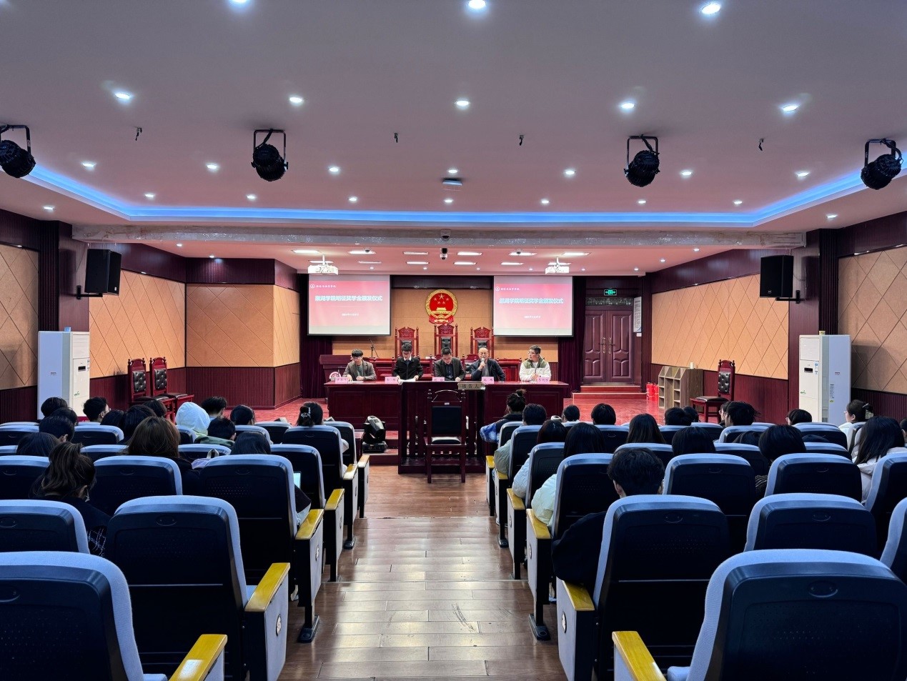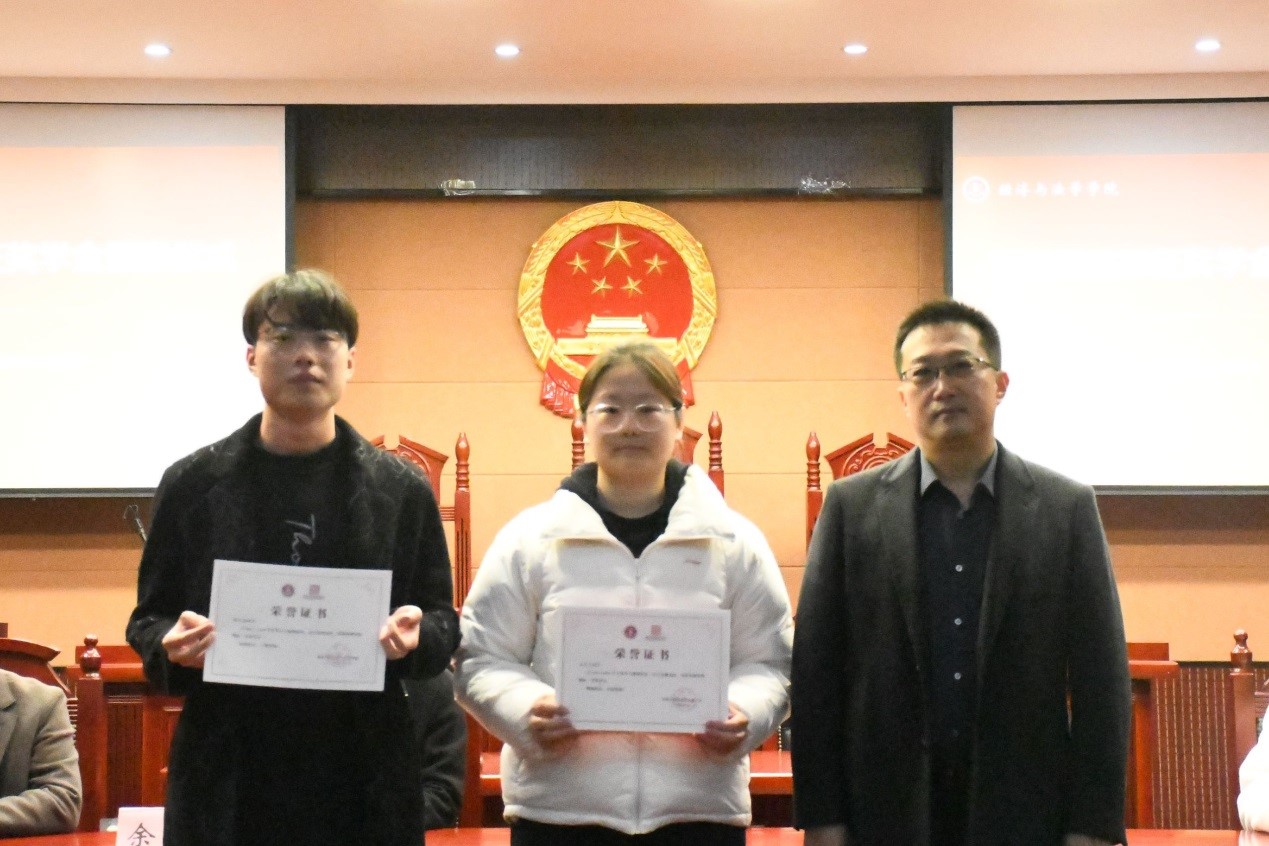 為表彰優秀,鼓勵先進,幫助法學專業學子們規劃職業目標,助力學生成長成才,經濟與法學學院于11月27日下午在模擬法庭舉行明征獎學金頒獎儀式和職業規劃與導航座談會。會議由經法學院副院長施瑋主持,明征律師事務所周鋒、侯昌飛、余偉律師、輔導員季鵬程出席,23法學明征班全體同學參加。