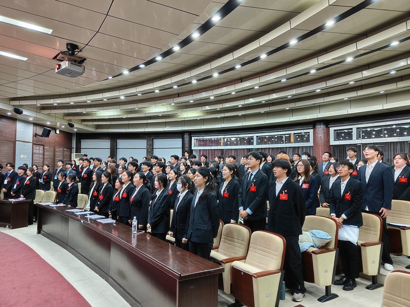 12月1日上午,經濟與法學學院第五次學生代表大會在致知樓報告廳召開。經法學院黨委副書記、紀委書記解雪梅,校團委兼職副書記、經法學院輔導員吳娜,經法學院團委副書記趙慧中、校學生會主席團成員候選人預備人員代表出席會議。開幕式由大會秘書長劉向軍主持。