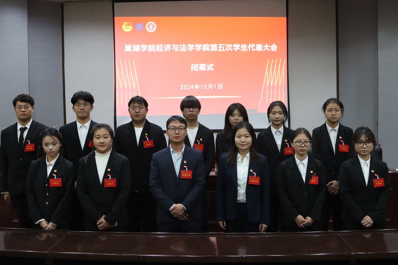 閉幕式上,大會宣布了經濟與法學學院第五屆學生委員會委員名單、主席團成員名單以及參加巢湖學院第九次學生代表大會的代表名單,一致通過關于《巢湖學院經濟與法學學院第四屆學生委員會工作報告》的決議。劉向軍對新當選的委員表示祝賀,希望他們在以后的工作中始終堅持正確的政治方向,牢記全心全意服務同學的宗旨,持之以恒加強作風建設,建設一支講政治、守紀律、重品行的工作隊伍。