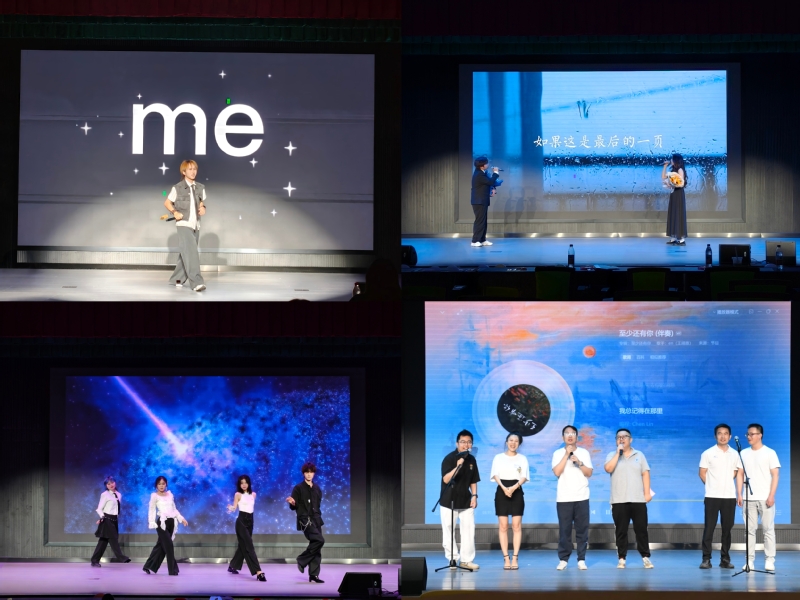 晚會以開場舞《Body》熱力啟幕,展現出青春的朝氣與活力,隨后《人間天堂》、《致愛yoursong》等歌曲傳遞出濃濃的溫情;小品《時間都去哪了》以幽默與感動交織的情節,勾起四年校園時光的點滴回憶。游戲環節“接歌詞”引發全場互動,歡笑不斷。畢業生沈怡佳、魏洲華演唱的《最后一頁》訴說離別的不舍,教師代表驚喜獻唱《至少還有你》催淚全場,熒光棒匯成星河流淌過泛紅的眼眶。
