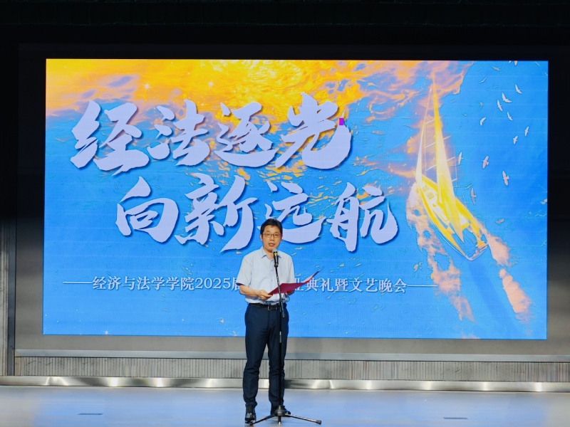 5月21日晚,經濟與法學學院在大學生活動中心四樓多功能廳隆重舉辦2025屆學生畢業典禮暨文藝晚會,經法學院黨委書記石庭、副院長施瑋、黨委副書記解雪梅、各系主任、部分教師和全體輔導員出席,受表彰畢業生和各年級學生代表參加。