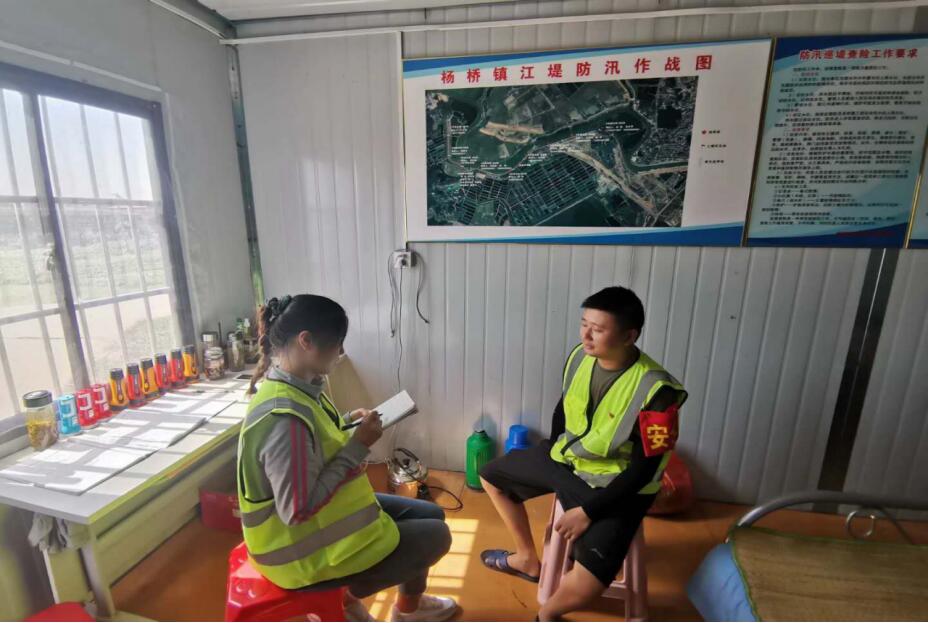 8月3日,實踐團成員羅佳雯與成員劉慧一同來到蕪湖市鏡湖區腰埂村所管轄的區域防汛點,當地村民正在哨棚里實地監測水位線。實踐團成員采訪當地抗洪工作者時了解到由汛期引發的大面積強降雨使得當地部分區域水澇較為嚴重,腰埂村緊急啟動防汛抗洪工作,在長7.1公里的埂壩上設立12個哨棚,每日6人輪崗,10名巡堤人員和50名防汛應急人員,值崗人員一日需跑籌12小時,晝夜輪換。在調研過程中,實踐團隊成員發現在防汛工作中,監測水位線這一工作也大有學問,需對特定防汛區域的水位線設置三線水位,超過11.00m設為防水位,超過12.50m為警戒水位,超過14.00m為保證水位。在一線防汛人員風雨無阻地堅守防線的情況下,防汛工作自7月7日開始,至今進展一切順利。