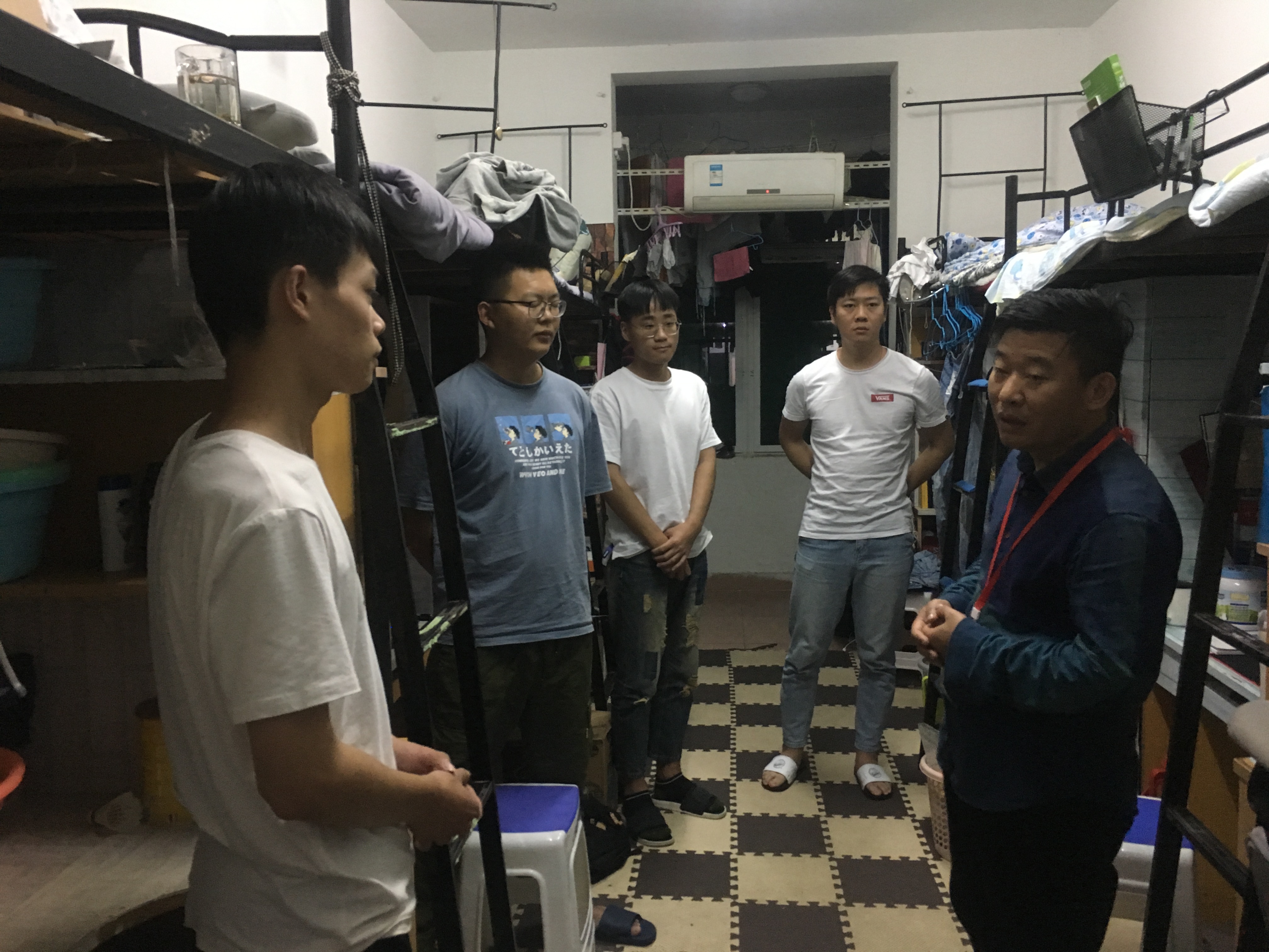 10月13日19:00,郭超與聯系班級輔導員陳文靜老師一起走訪男生宿舍。在宿舍里,郭超十分關心同學們的學習與生活,認真察看了同學們的生活環境衛生和學習狀態,鼓勵同學們走下網絡,走出宿舍,走向教室和操場。郭超指出,大三學年非常重要,在充分認識自我的基礎上,一定要提前規劃好職業生涯。郭超表達了自己非常樂意與同學們交流,幫助同學們的意愿,倘若生活上遇到什么問題可以隨時與他探討。他強調當下疫情防控常態化的背景下,希望大家共同努力營造安全、文明、衛生、和諧的生活環境。