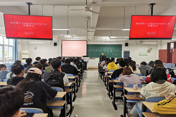 為做好運動會期間各項保障工作,保證運動會順利舉行,10月28日中午11點50分,信息工程學院在慎思樓中201教室順利開展第十七屆運動會安全工作布置會。學院黨委書記陳士群、團總支副書記何平、團學組織工作人員以及信息工程學院全體參賽運動員參加會議。