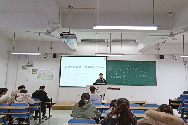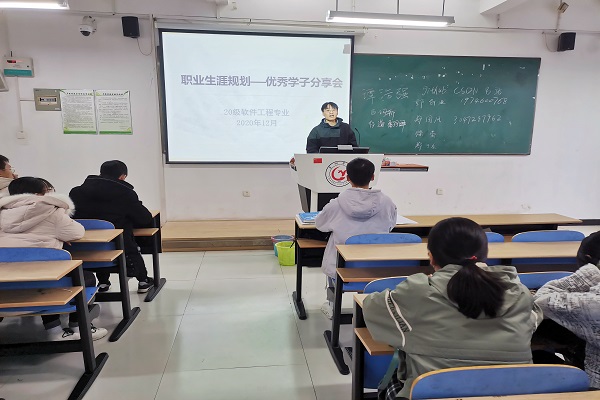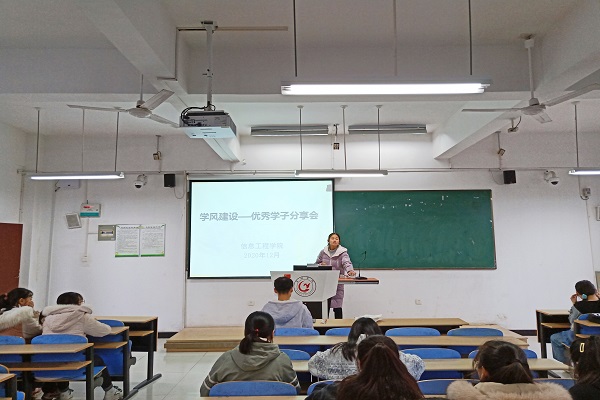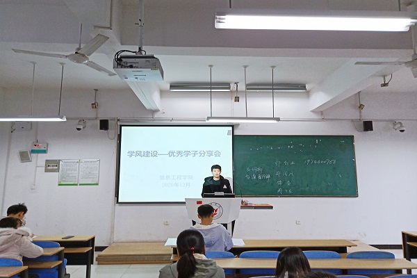 為做好新生的職業規劃教育指導,營造良好的育人環境與學習氛圍, 12月11日上午10:00,信息工程學院于慎思樓北201教室舉行學風建設——優秀學子經驗分享會。國家獎學金獲得者——郭創業,校級一等獎學金獲得者——鄭子龍、鄭國風,校優秀團學干部——徐瑩,分別作了分享匯報。本次分享會由院輔導員陳文靜主持,2020級各班級學生代表參加。