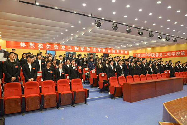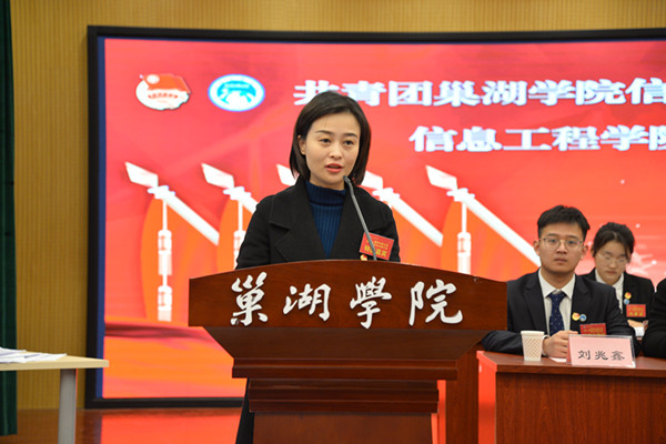 卜洪漩代表校團委發表講話。她在講話中充分肯定近年來信息工程學院團總支在社會實踐、志愿服務、基層活力團支部建設、“挑戰杯”“創青春”“互聯網+”等競賽方面取得的成績,對與會代表提出四點要求:一要堅定理想信念,加強思想建設;二要加強知識學習,練就過硬本領;三要推進從嚴治團,發揮表率作用;四是服務學院發展,助力青年成長。