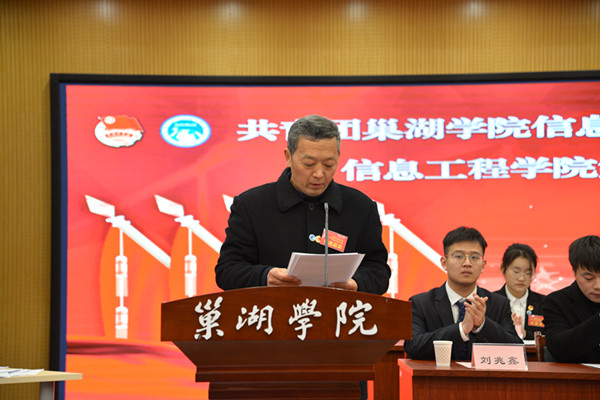 大會在振奮人心的國歌聲中拉開序幕。何平代表學院團總支致開幕辭,向長期以來一直關心、指導學院團學工作的領導老師表示衷心感謝,宣布了本次大會的主要任務是回顧總結學院2019年以來的團學工作,進一步明確今后學院團學的總體思路和具體任務,選舉產生共青團巢湖學院信息工程學院第一屆總支委員會以及信息工程學院第一屆學生委員會。