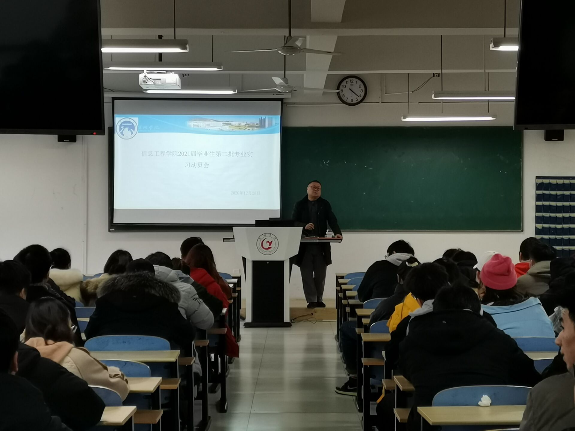 2020年12月28日下午,信息工程學(xué)院在慎思樓中201教室召開2021屆畢業(yè)生第二批專業(yè)實(shí)習(xí)動(dòng)員會(huì),學(xué)院副院長吳其林對專業(yè)實(shí)習(xí)的要求和注意事項(xiàng)進(jìn)行了詳細(xì)介紹,參與第二批專業(yè)實(shí)習(xí)的180名學(xué)生全部參會(huì),本次會(huì)議由院就業(yè)聯(lián)絡(luò)員梁騰飛主持。