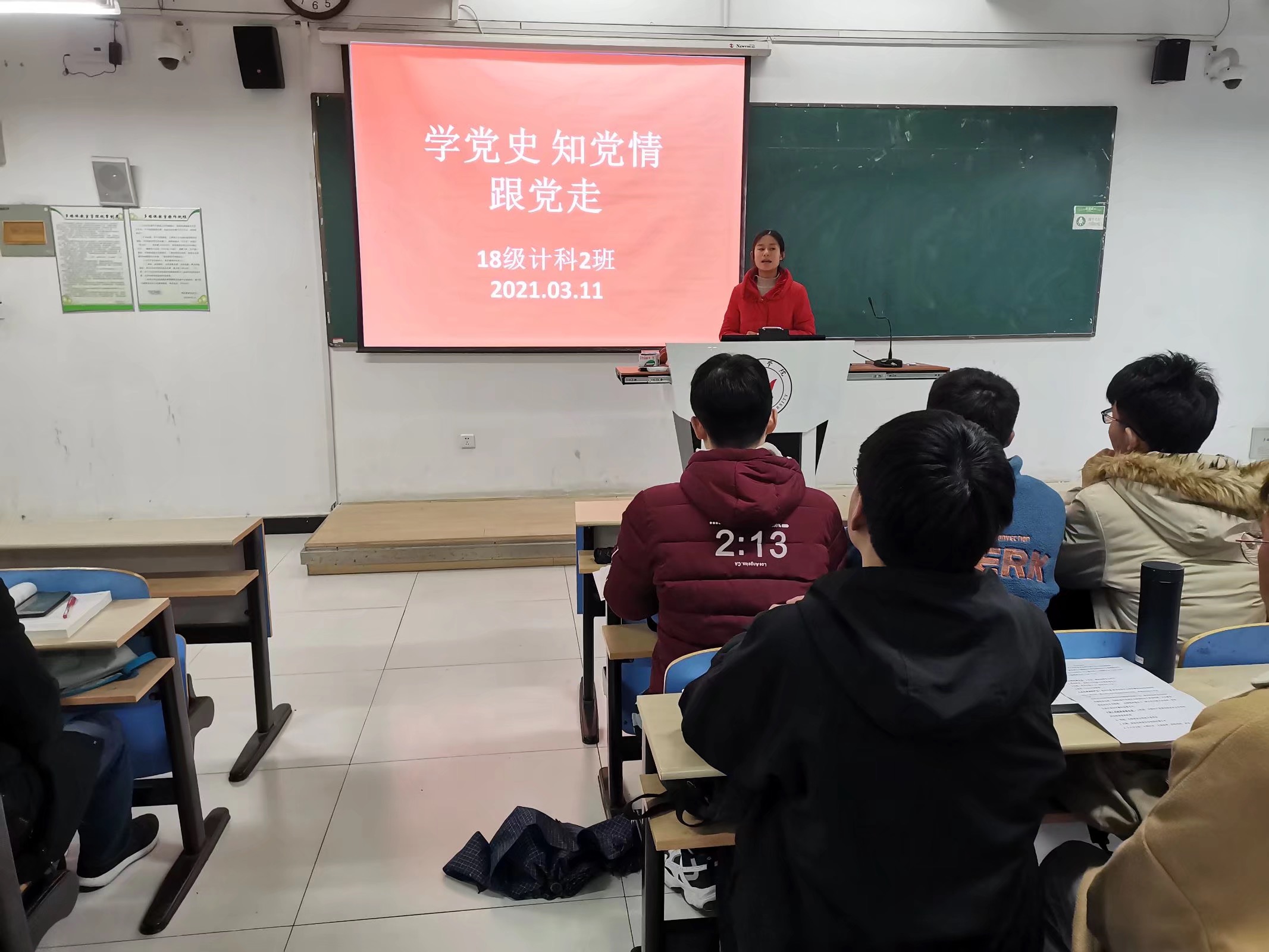 各班級組織了形式多樣、內容豐富的主題教育活動。20級軟工2班在慎思樓北201教室組織觀看《建國大業》紅色電影,加深同學們對中華人民共和國建立之出艱難歲月的認識,了解到共產黨人為黨和國家做出的犧牲,去追憶歷史和緬懷革命先烈。19級計科1班在慎思樓中304教室開展黨史知識問答活動,此次活動緊緊圍繞中國共產黨的黨史發展等方面的知識展開,激發了同學們主動學習黨史知識的熱情,不斷增強同學們對黨史學習的主動性。18級計科2班在慎思樓北101教室組織主題班會,會上邀請部分同學分享黨史學習心得,從黨的百年偉大奮斗歷程中汲取繼續前進的智慧和力量。17級網工1班召開了以“學黨史、知黨恩、跟黨走”為主題的線上會議。會上,全體同學一起學習了習近平總書記關于黨史教育的重要講話,并展開了激烈的討論。