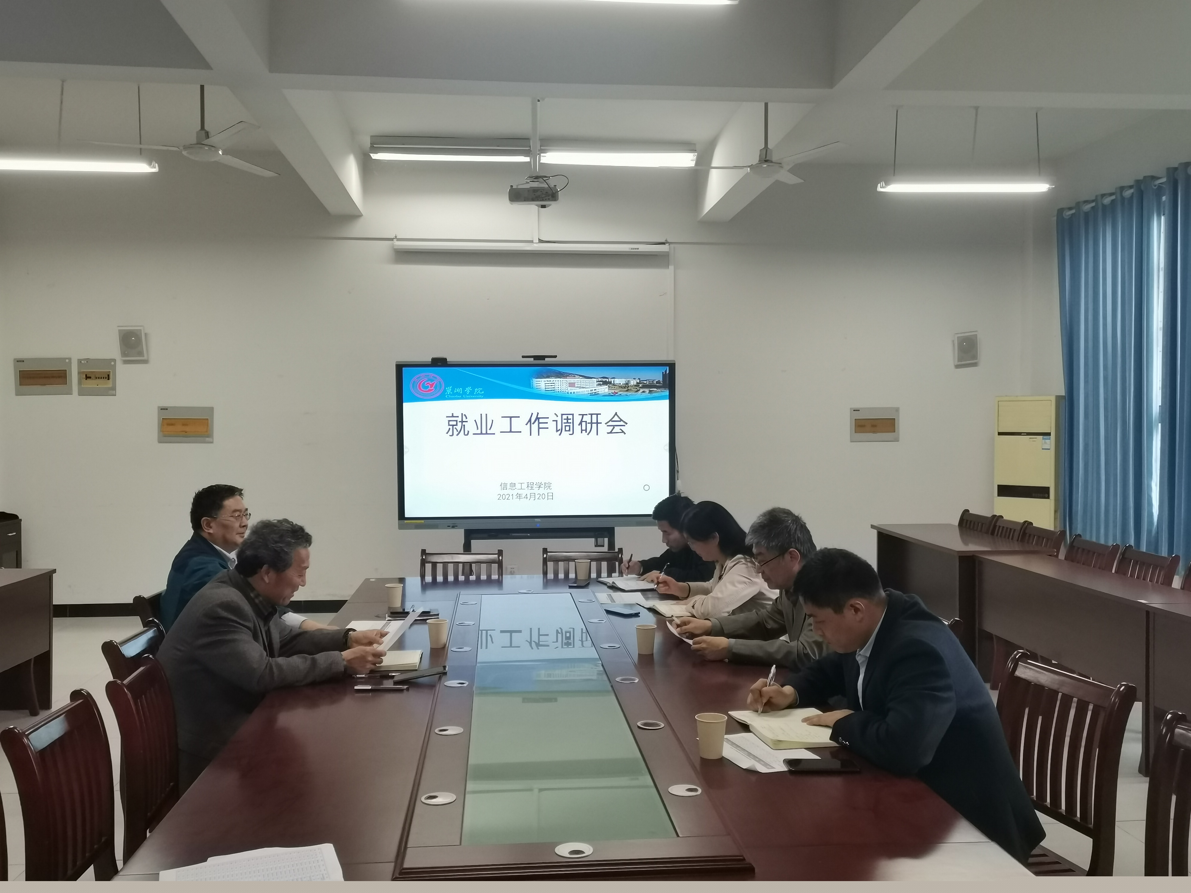 為及時準確了解信息工程學院就業工作情況,推進就業工作高質量開展,4月20日下午,校黨委副書記阮愛民,學工部副部長華紫武、副部長郭鳳英,大學生就業指導中心老師張軻一行蒞臨信息工程學院調研指導就業工作并召開座談會,信息工程學院黨委書記陳士群、黨委副書記童先軍、就業聯絡員梁騰飛參會。