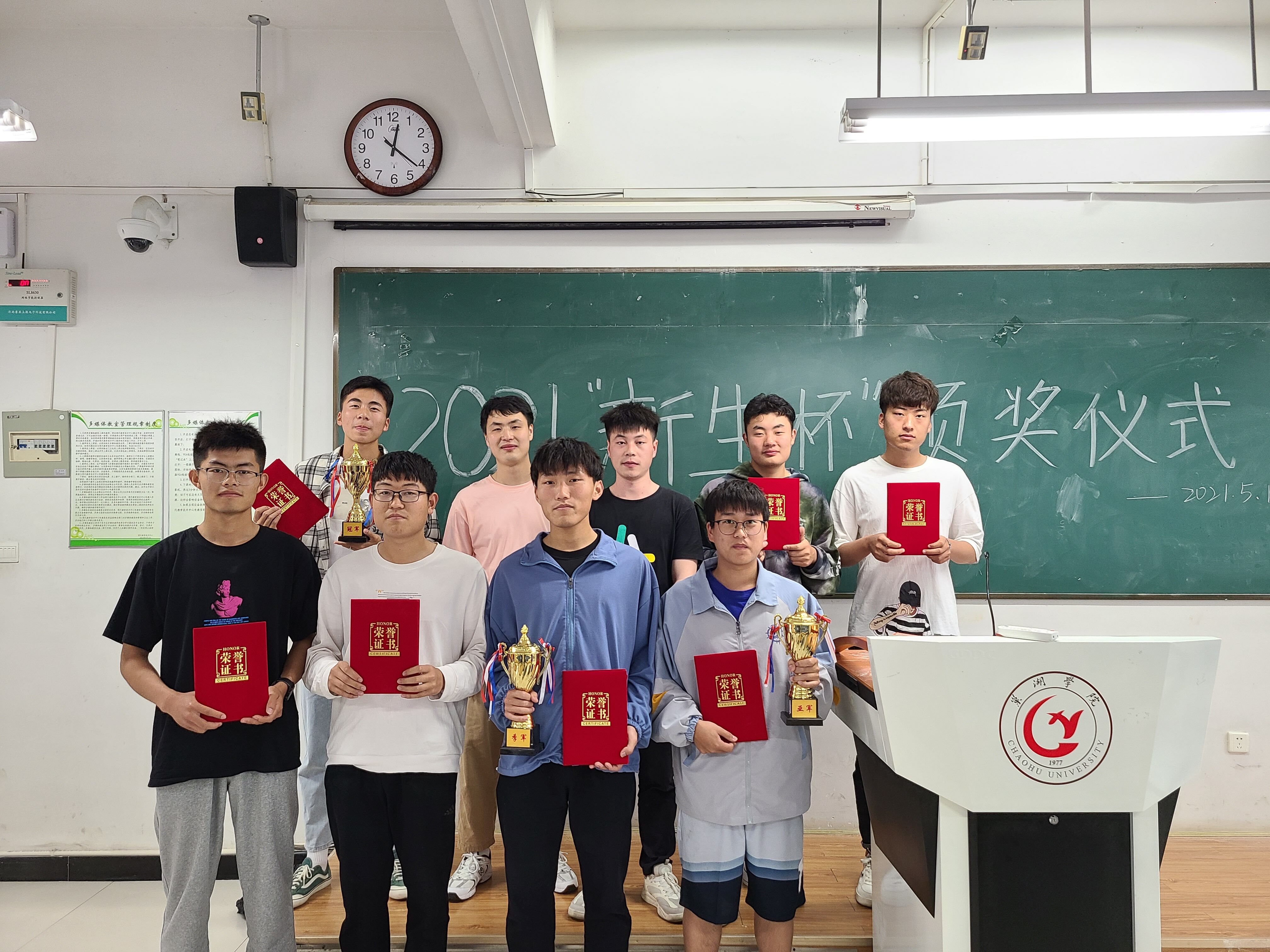 為提高學院學生的綜合素質,豐富同學們的課后娛樂生活,同時幫助大一新生更好地融入大學生活,信息工程學院于5月11日中午12:00在慎思樓中103教室舉行信息工程學院2021“新生杯”籃球賽頒獎儀式。本次頒獎儀式由學生會主席團成員鄭緣主持,參加本次頒獎儀式的有團總支副書記何平、輔導員伍兵、以及部分籃球賽獲獎人員。