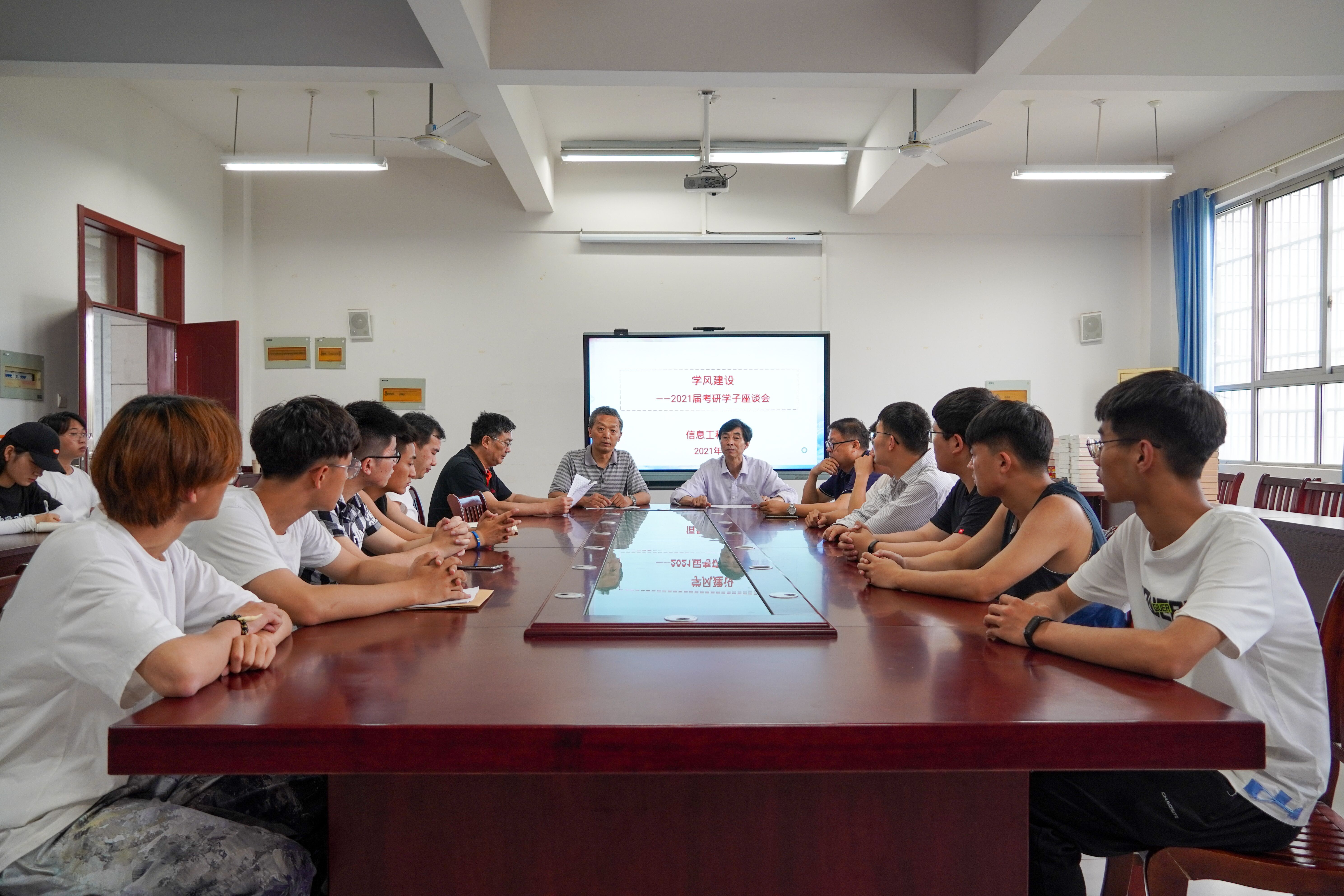 6月1日下午,信息工程學(xué)院在學(xué)院會(huì)議室組織2021屆考研學(xué)生代表座談會(huì)。校黨委委員、信息工程學(xué)院院長鄭尚志,院黨委書記陳士群、副書記童先軍、副院長吳其林, 2021屆考研學(xué)生代表和非畢業(yè)班學(xué)生代表參加會(huì)議。本次會(huì)議由陳士群主持。