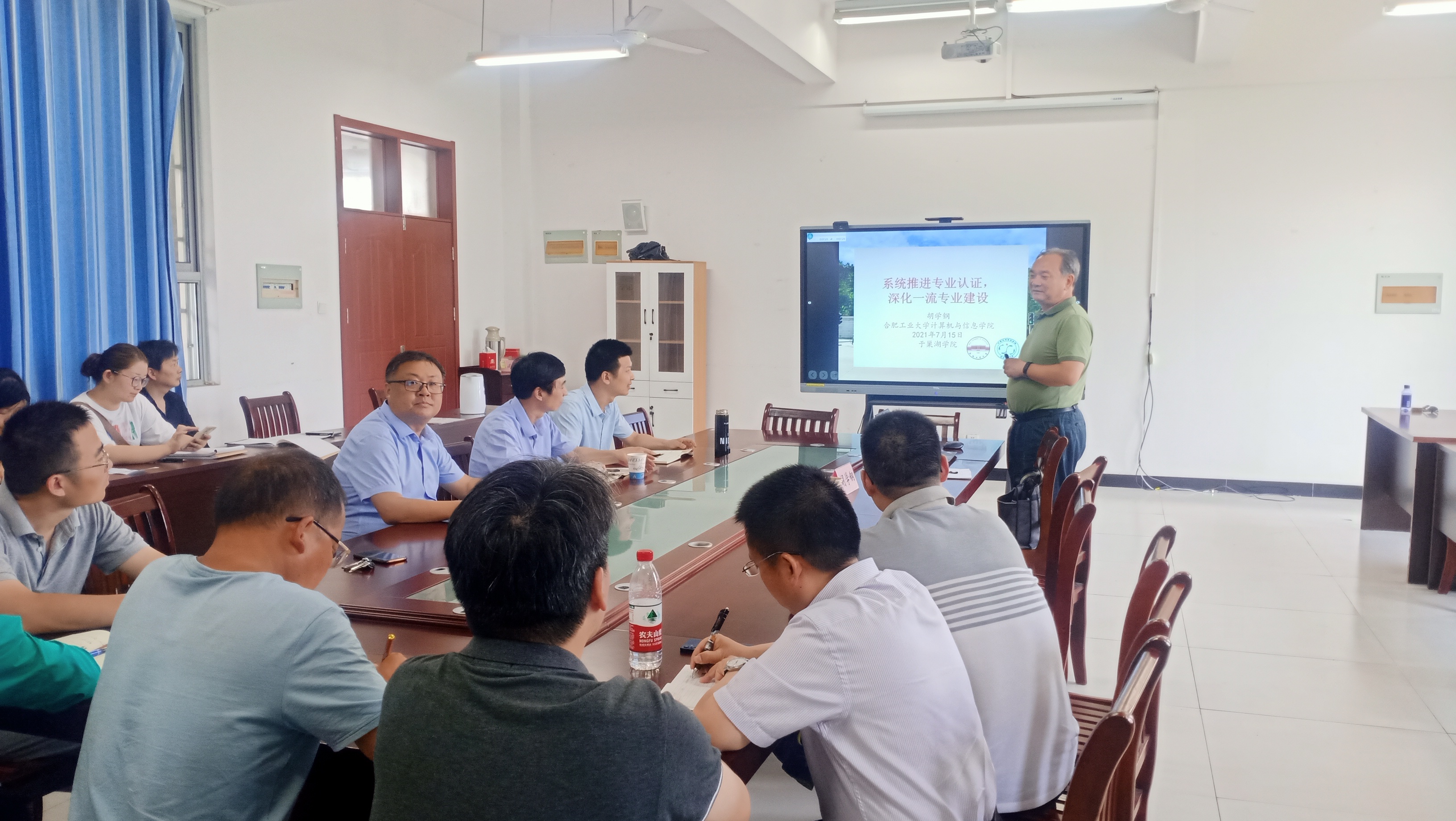 胡學鋼教授作“系統(tǒng)推進專業(yè)認證,深化一流專業(yè)建設”專題報告,他從一流專業(yè)建設要點、專業(yè)認證與認證標準、推進專業(yè)認證工作的部署、專業(yè)認證申請的成功遞交和受理、自評報告的組織與支撐材料的有序組織、認證的核心思想對教學建設的指導等六個方面就工程教育專業(yè)認證全過程要點做了系統(tǒng)性的闡述。