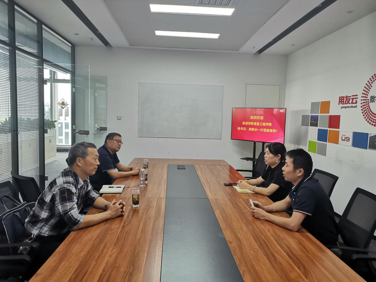 為開拓實習就業基地,加強校企合作,9月28日下午,信息工程學院黨委書記陳士群、副院長吳其林、教學秘書張小偉、輔導員樊樂樂和就業創業工作聯絡員梁騰飛一行前往安徽用友軟件公司開展考察交流活動,受到了用友公司的熱情接待。