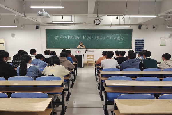 信息工程學院“新生杯”籃球比賽安全工作布置會于10月22日下午在慎思樓中101召開。此次會議由院團總支書記劉小燕主持,各籃球隊隊長及學生會體育部全體成員與會。