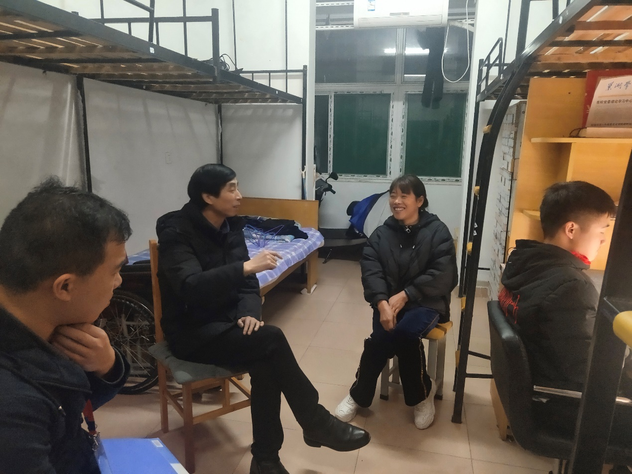 為了解新學期學生的思想動態、學習生活,提高學生的安全意識,3月11日19:00,信息學院院長鄭尚志及全體輔導員深入寢室,開展宿舍走訪活動,進一步了解同學們的宿舍生活情況。