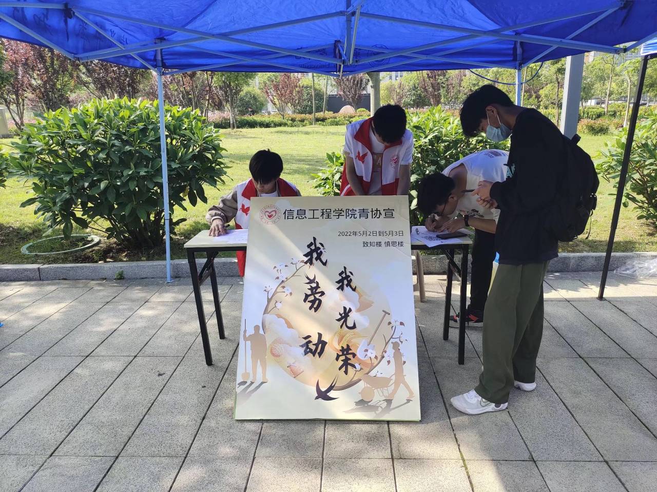 奮斗正青春,勞動(dòng)最光榮。為培養(yǎng)大學(xué)生正確的勞動(dòng)價(jià)值觀和良好的勞動(dòng)品質(zhì),讓廣大青年學(xué)子切切實(shí)實(shí)地領(lǐng)悟到最光榮、最崇高、最偉大、最美麗的勞動(dòng)價(jià)值,從而在勞動(dòng)中接受鍛煉,磨煉意志、強(qiáng)化責(zé)任擔(dān)當(dāng)。信息工程學(xué)院青協(xié)于5月2日上午在致知樓前開展“我勞動(dòng),我光榮”活動(dòng)。
