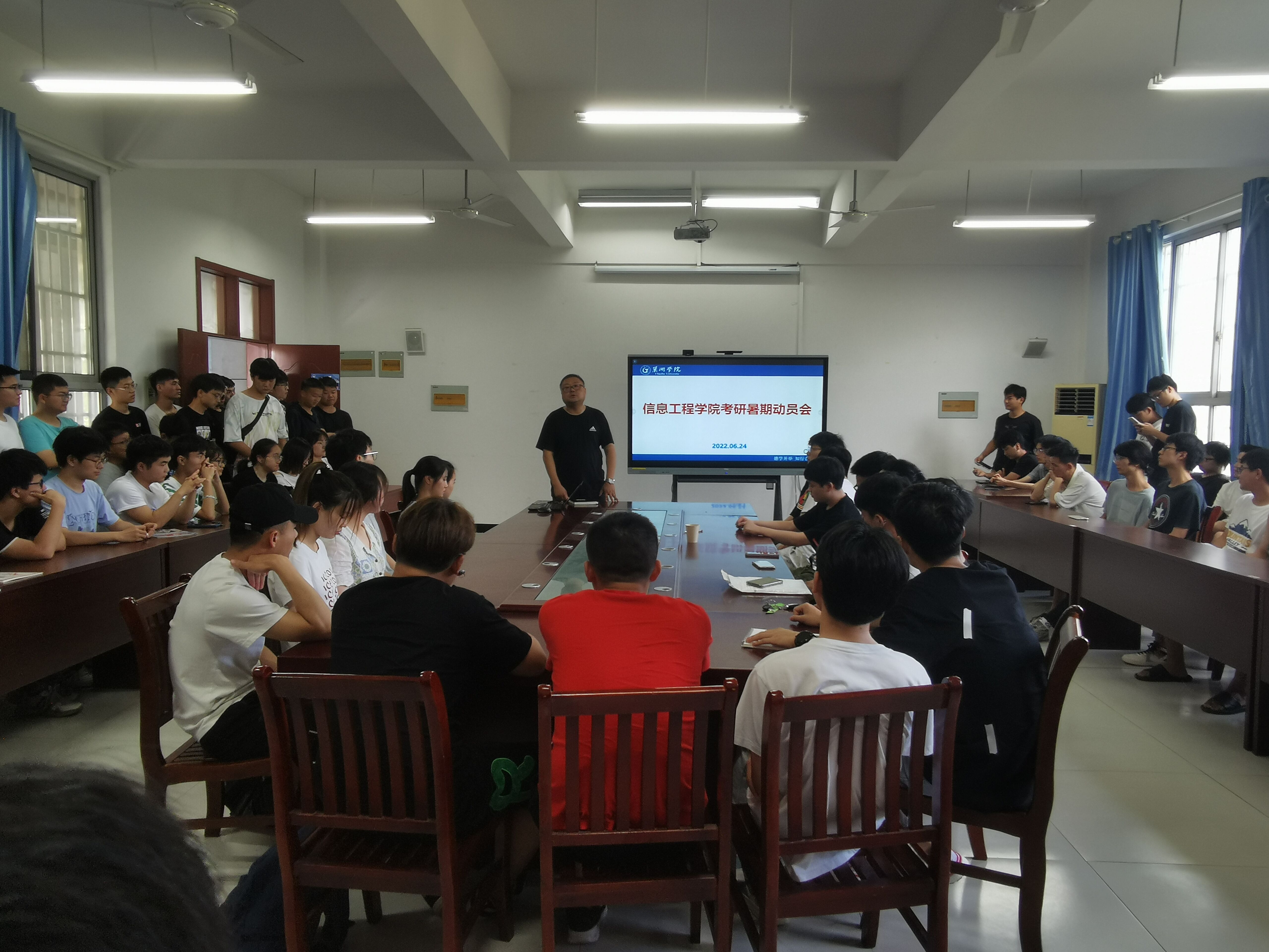 為進一步指導信息工程學院學子備戰考研,堅定考研初心,做實、做細暑假留校學生管理工作,6月24日16:00,信息工程學院于慎思樓會議室召開暑期考研動員會,會議由信息工程學院副院長吳其林主持,信息工程學院輔導員、學院暑期留校學生參加了此次會議。