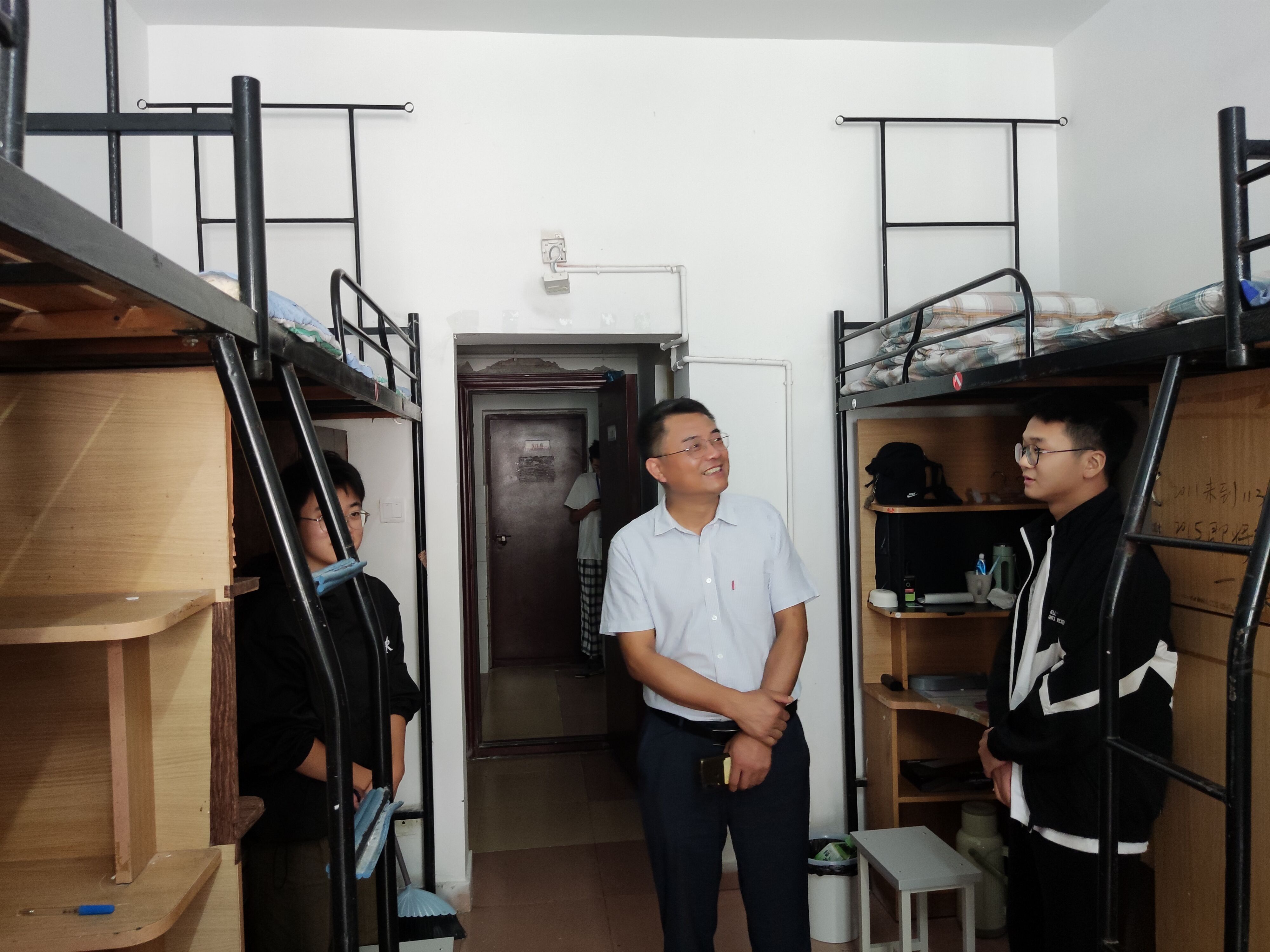 為了解新生入學情況、幫助新生盡快適應大學生活,9月4日上午,計算機與人工智能學院黨委書記王光富帶領新生輔導員走訪新生寢室,親切看望剛剛入學報到的2022級新生,給新同學帶去問候與關心。
