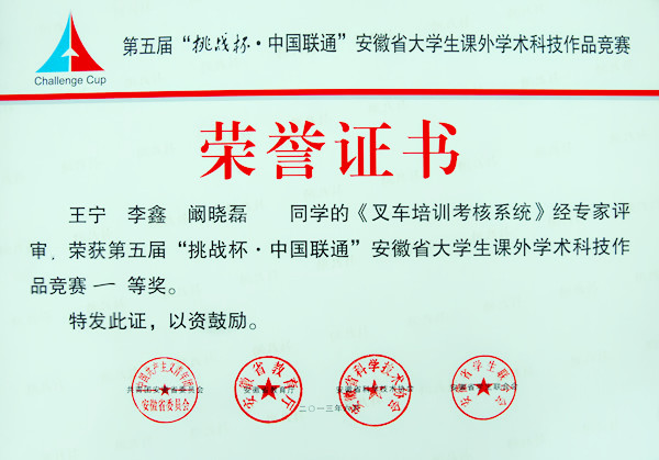 第五屆“挑戰杯”安徽省大學生課外學術科技作品競賽一等獎