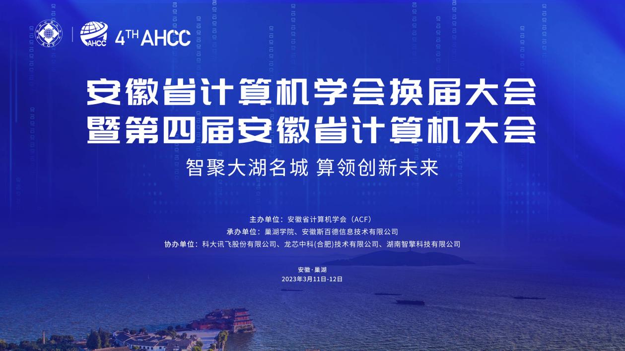 2023年3月11日至12日,第四屆安徽省計算機大會在巢湖學院舉行,大會主題為“智聚大湖名城·算領創新未來”。政府、學術界和企業界的領導以及專家、教授、產業代表及會員代表、行業媒體等近300人齊聚一堂,共襄盛舉。此次大會由安徽省計算機學會主辦,巢湖學院、安徽斯百德信息技術有限公司承辦,科大訊飛股份有限公司、龍芯中科(合肥)技術有限公司、湖南智擎科技有限公司協辦。