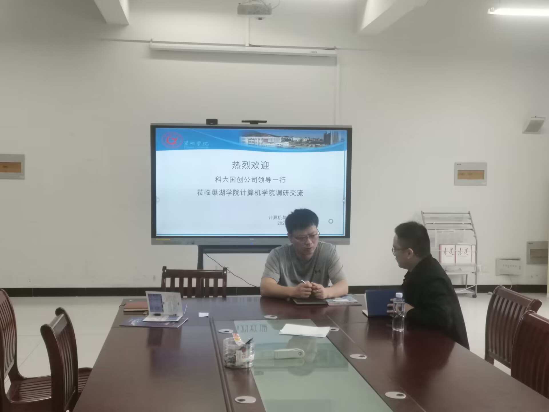 5月26日上午,科大國創軟件股份有限公司校招部經理李山山到計算機與人工智能學院走訪交流,院企雙方在慎思樓一樓會議室進行座談交流,院黨委副書記王震宇、就業聯絡員梁騰飛參加會議。
