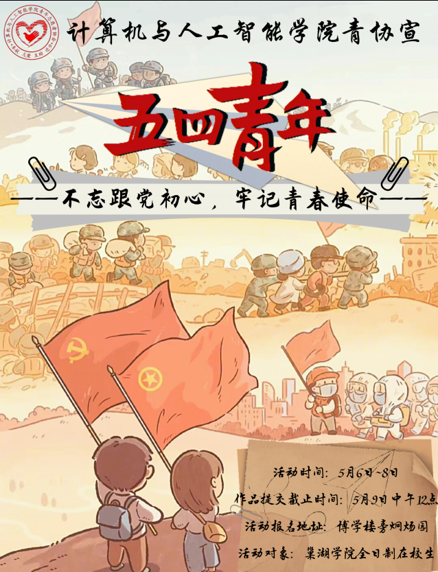 千年煙云匆匆過(guò),淘不盡,青年斗志高。為厚植愛國(guó)情懷,展示青春風(fēng)采,激勵(lì)當(dāng)代青少年堅(jiān)定信仰力量,展現(xiàn)良好的精神風(fēng)貌。計(jì)算機(jī)與人工智能學(xué)院青協(xié)于5月6日至5月8日在博學(xué)展臺(tái)處舉辦“不忘跟黨初心,牢記青春使命”系列活動(dòng)。