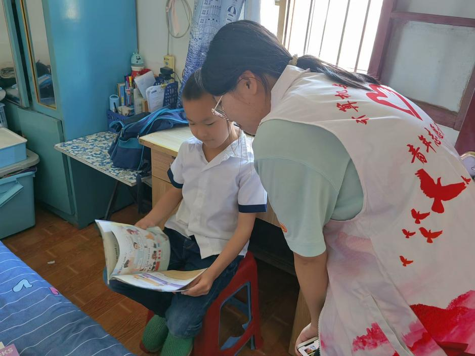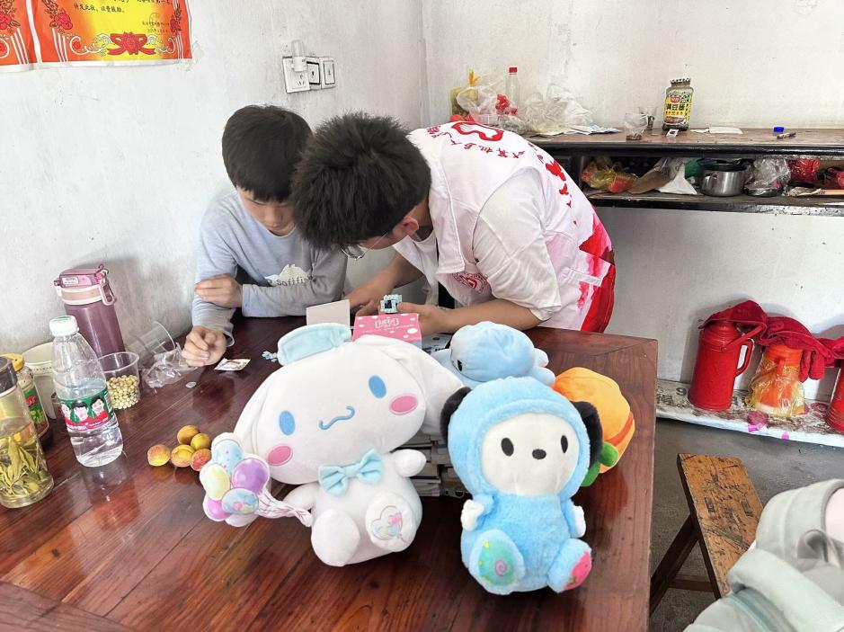 活動伊始,志愿者們乘坐公交車前往螞蟻寶貝的家里。第一隊來到官圩社區附近的項遠東小朋友家里。志愿者將帶來的文具用品和玩偶交給項遠東小朋友,并對其進行作業輔導。之后志愿者們帶著項遠東小朋友進行玩泡泡機,搭樂高,玩卡片等一系列小游戲。第二隊來到羅皓軒小朋友家里,志愿者們將帶來的禮物交給羅皓軒小朋友并詢問他近期學習情況。之后志愿者對羅皓軒小朋友進行一對一輔導,并在完成作業后和小朋友一起玩疊飛機游戲。