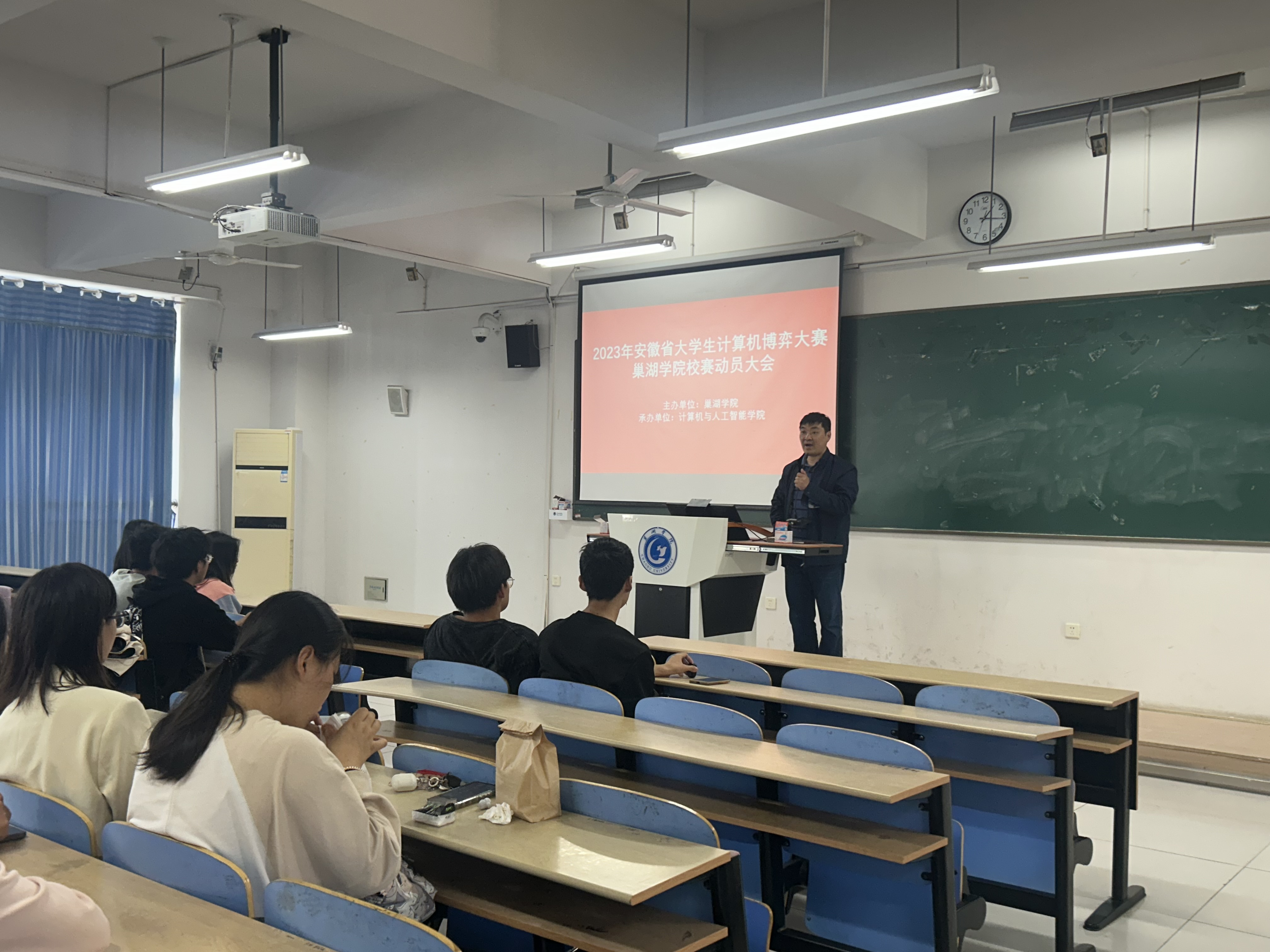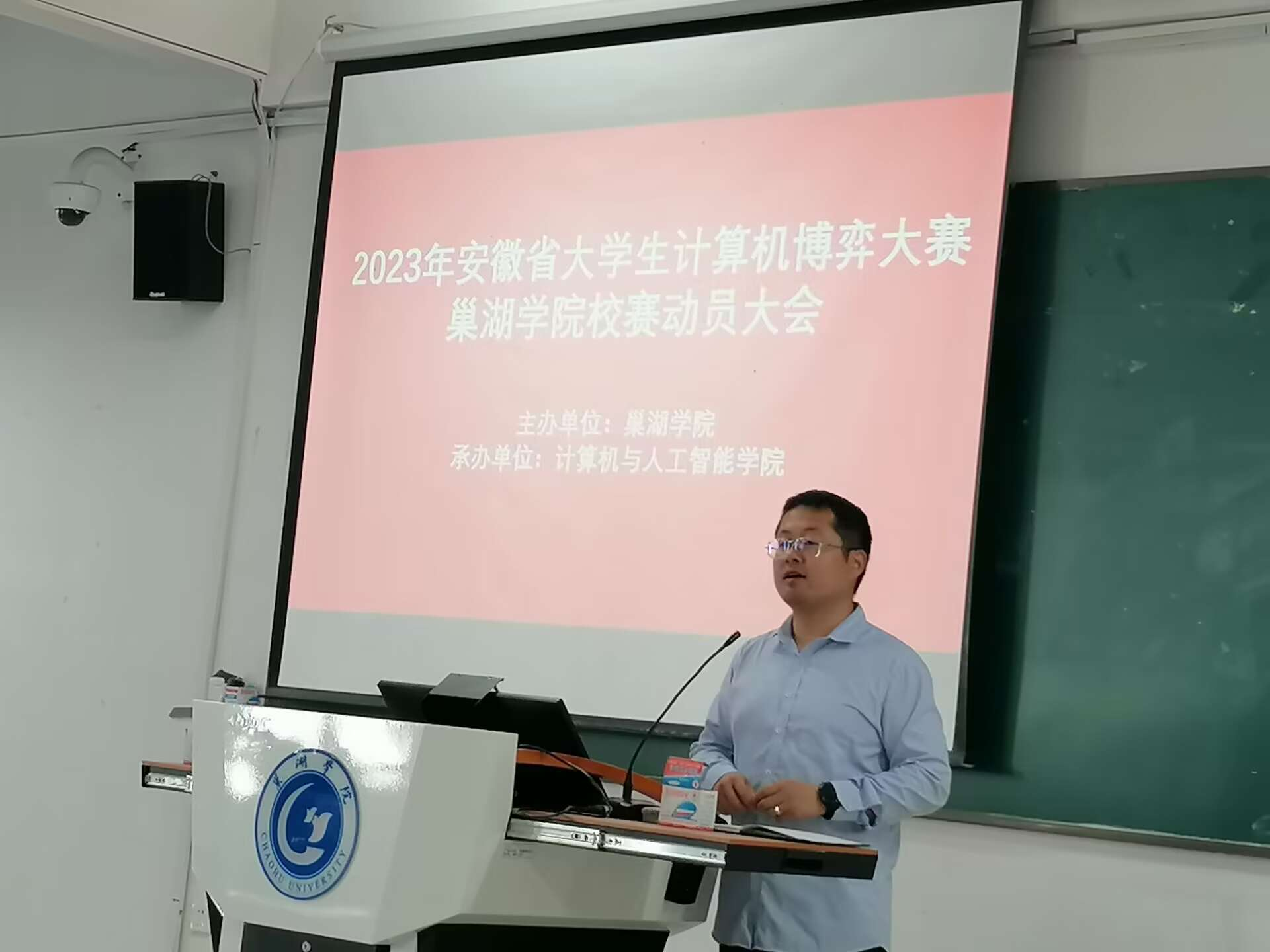 為培養學生的創新能力、自主學習能力和實踐動手能力,全面提高學生的科學素養和專業實踐技能,增強大學生學習人工智能的興趣以及學習氛圍,計算機與人工智能學院高度重視《2023年安徽省大學生計算機博弈大賽》,成立了專門的競賽委員會,于10月30日專門開展了面向此項賽事的動員大會,會上劉振羽、劉運等老師對該賽事進行了積極宣傳和廣泛動員,邀請廣大巢院學生積極報名參賽。