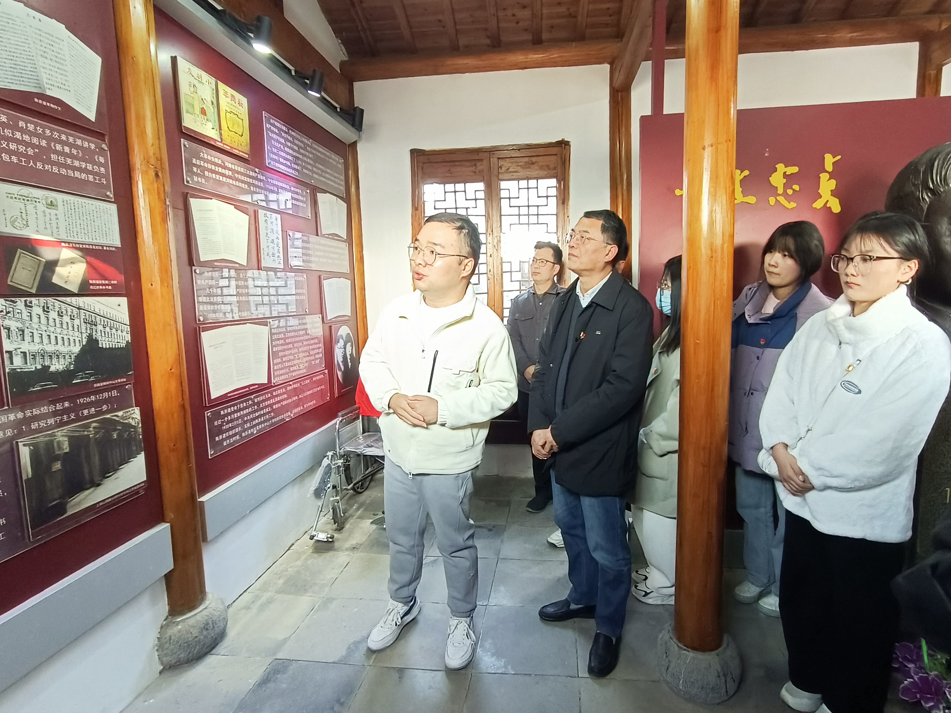 師生黨員在現場講解員的帶領下參觀了陳原道烈士故居。“雨花忠魂亮氣節,紅色血脈永賡續”,土地革命戰爭時期,陳原道兩次遭國民黨政府逮捕入獄,經受了嚴峻的考驗,始終橫眉冷對,堅貞不屈,保持了共產黨人的崇高氣節。