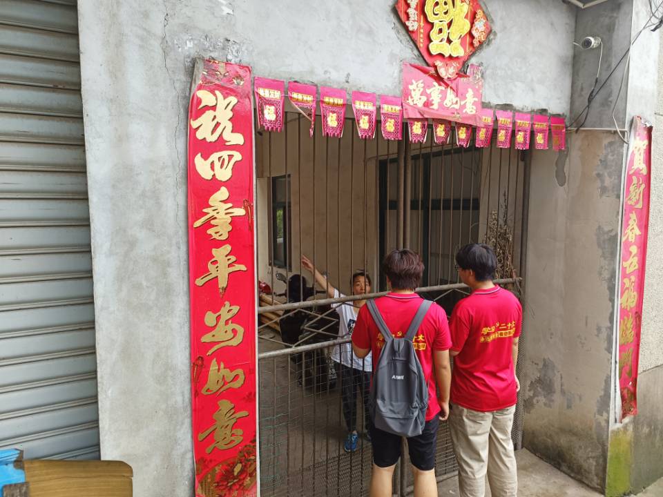 圖為實(shí)踐團(tuán)成員向當(dāng)?shù)鼐用窳私廪r(nóng)村發(fā)展情況