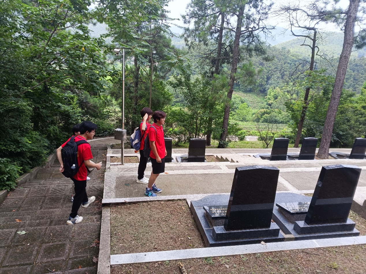 烈士陵園中實(shí)踐團(tuán)隊(duì)成員們攀爬100多層的樓梯,直至達(dá)到頂部的劉一鴻紀(jì)念亭。站在亭子上,他們俯視著烈士們的墓碑和周圍的天地,心中油然而生無法言喻的情感。亭子附近還有許多渡江戰(zhàn)役無名墓碑,以及為撲滅8.2火災(zāi)而犧牲的三名消防員的紀(jì)念碑。